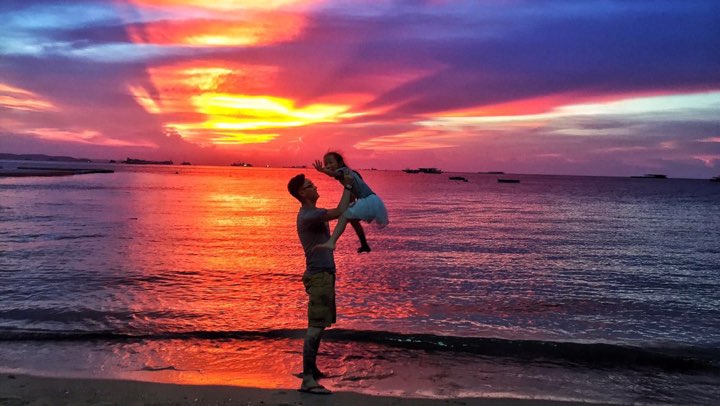 照片名称:《海•夕阳•父女》